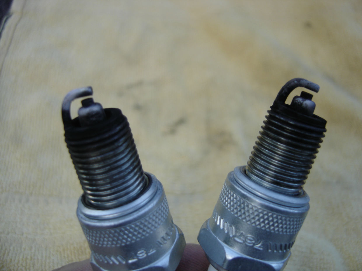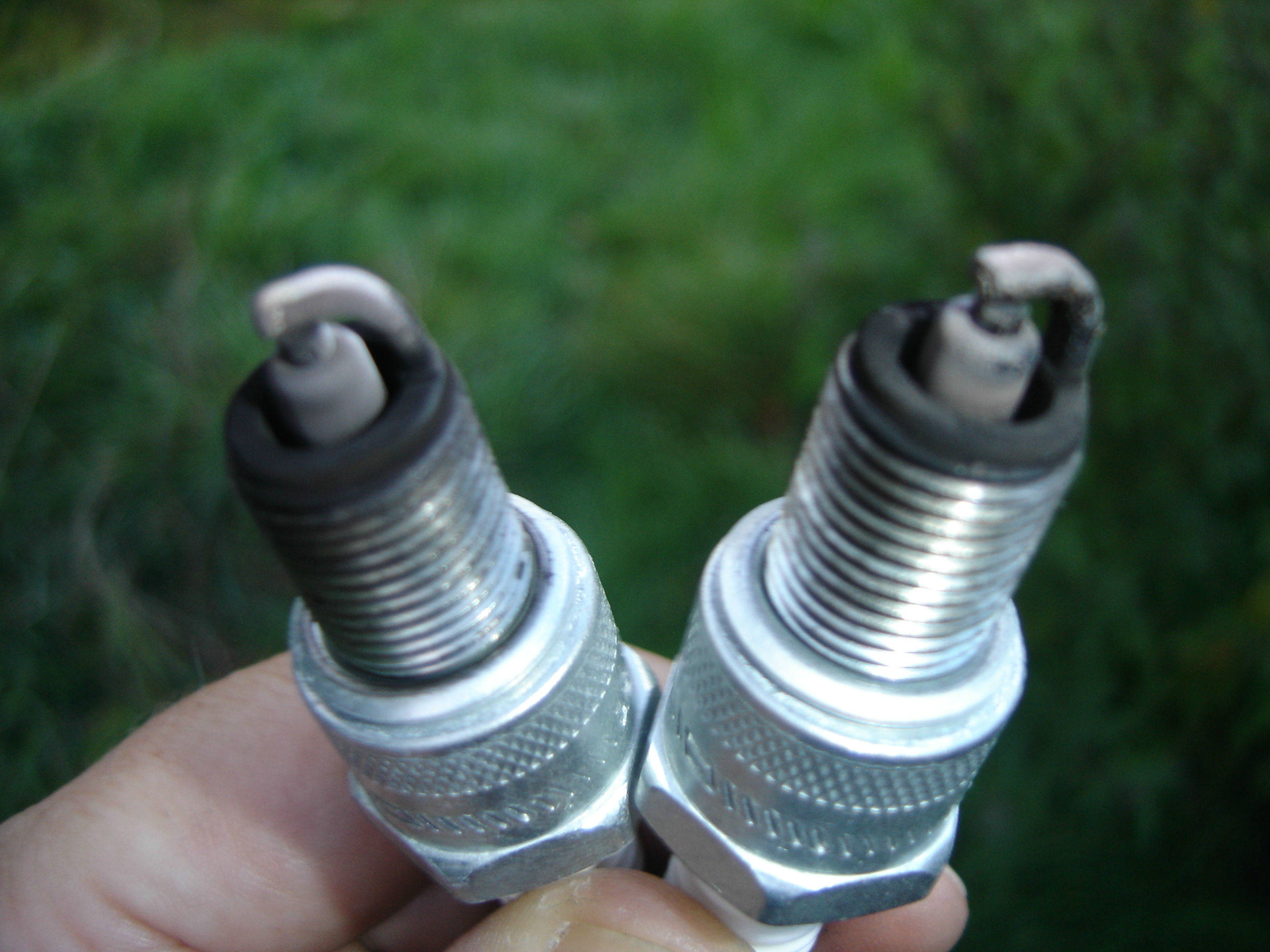 Gewindeanfang und Bogenelektrode am Anfang verrusst. Im weiteren Verlauf -genau wie die Mittelelektrode weiss -und das nur von einer Seite! Wenn ich die Kerzen also in der Hand um 180° drehe, ist die Bogenelektrode komplett verrusst.
