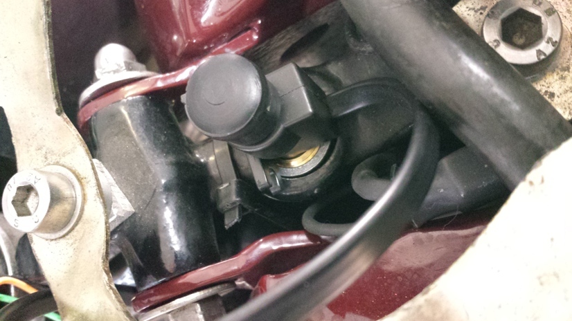 Als Tachogeber aber nicht die mitgelieferten Teile benützt (wollte keine zusätzliche Kabelage am Mopped), sondern einen universellen Tachoimpulsgeber der von der bereits vorhandenen Tachowelle am Getriebe angetrieben wird.