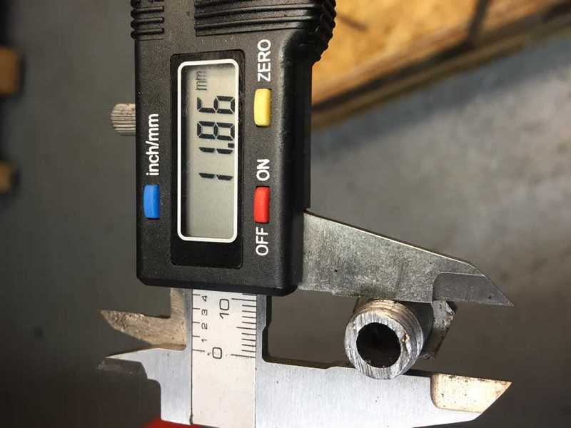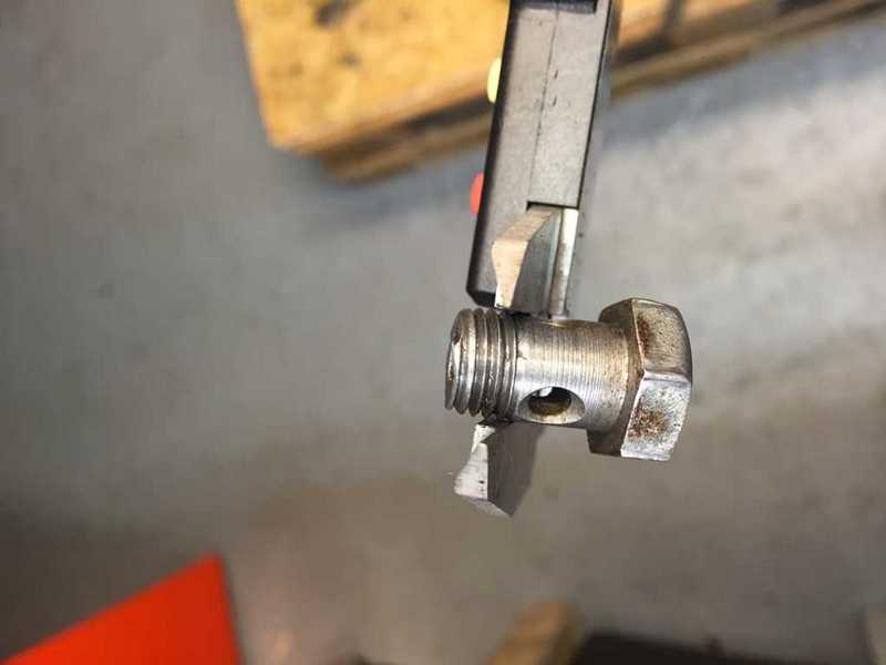 Ich bekomme das so aber nicht mehr dicht. Ursprünglich kommt da ja auch sicher kein Banjo dran. Die Kernbohrung bzw. das Gewinde innen hat ca. 12 mm. Die Schraube hat knapp 11,9mm. Somit fällt ein 7/16 Adapter aus, wenn man die Leitung klassisch von oben ohne Banjo anbringen möchte. Der gefeilte Banjo sieht nicht gerade super aus. Ich bin mir nicht sicher, ob ich jetzt einfach einen neuen 12mm Banjo kaufen soll und das ganze mit neuen Dichtscheiben nochmal so versuche. Bei dem Gewinde kann ich auch nicht sagen, was das für eine sein soll. 12mm metrisch passt mit normaler Steigung nicht. 1/2 Zoll mit UNC auch nicht. Könnte ein halb Zoll in fein sein. Dafür finde ich aber keine Hohlschrauben. Die momentane Schraube ist auch stark gekürzt worden, da das Gewinde im Sattel auch von der Tiefe nicht mehr her gibt.