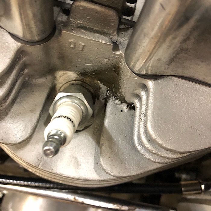 Neuerdings habe ich auch ab und an einen Ölfilm? Um die Zündkerze vom hinteren Zylinder..