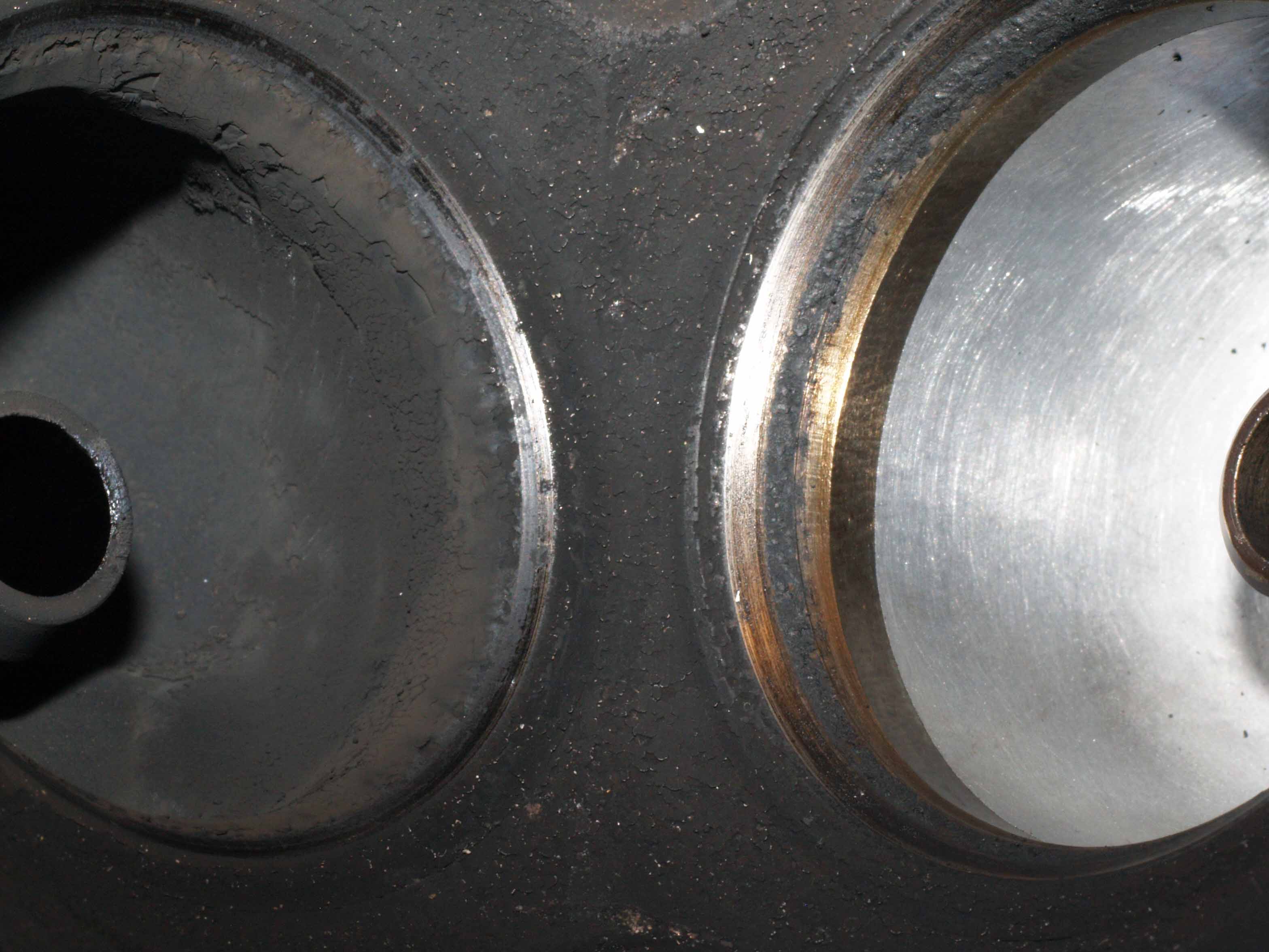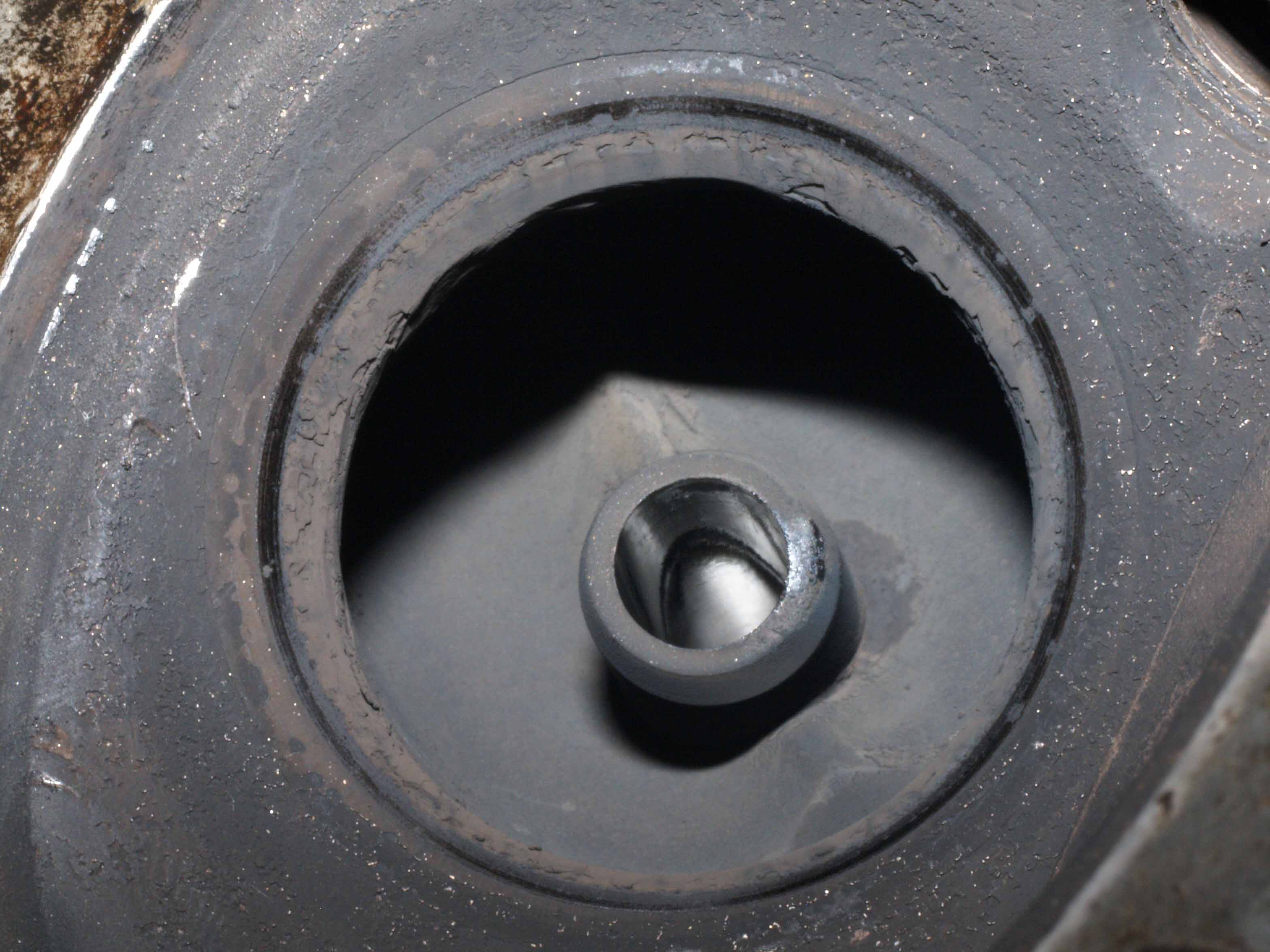Der Einlaß ist ja bearbeitet. Könnte sein, daß dort nun ein Riß ist,oder ein geöffneter Lunker,der bei Temperatur aufgeht. Ich glaube es aber nicht wirklich.
