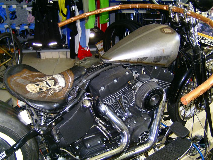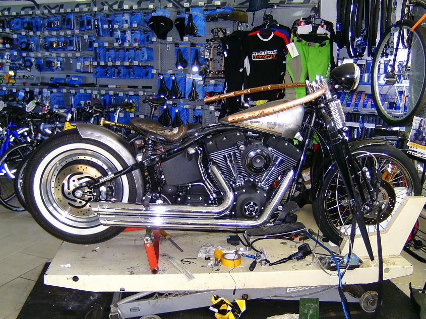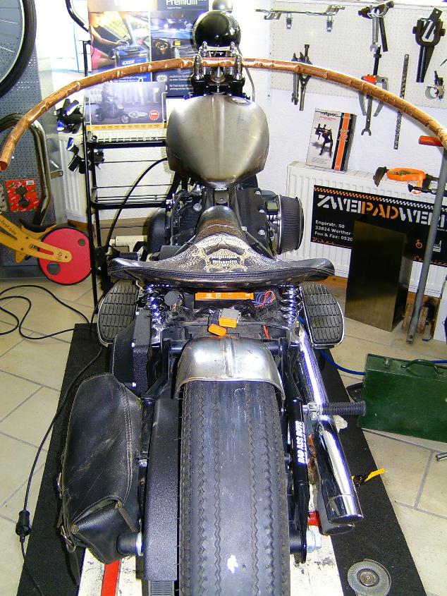 Ne alte Möhre hat mehr Flair und Charakter als so ein neumodischer Kram. Da kann man an so nem modernen Geraffel drum oldstylig usw. herumbauen was man will: Die ganze Motor-Getriebe-Einheit passt nicht dazu, auch ein extrem fettes Hinterrad nicht, der Softtail ist nen Pseudo-Starrrahmen, ganz zu schweigen von dem Staubsauger-Turbinen-Feeling, was so ein moderner gummigelagerter Ausgleichswellen-Motor macht.