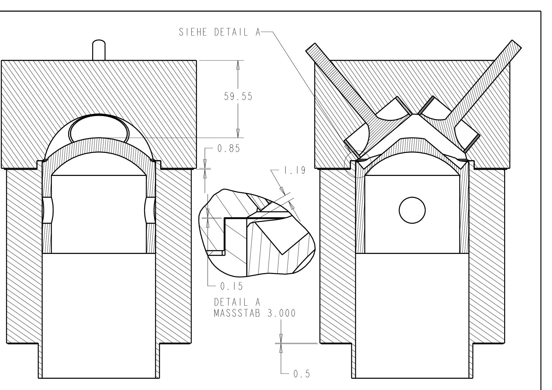 Der Zylinder wird gekürzt. Der vorhanden Spalt zwischen Kopf und Zylinder wird auf 0.15mm verkleinert.