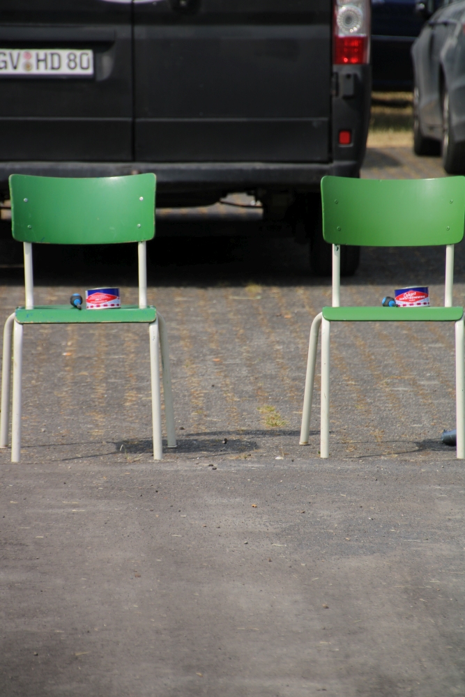 Aber was ist das da mit den grünen Stühlen und den Typen die da wie betend vor knien und irgendwas mit ner Blechbüchse machen?