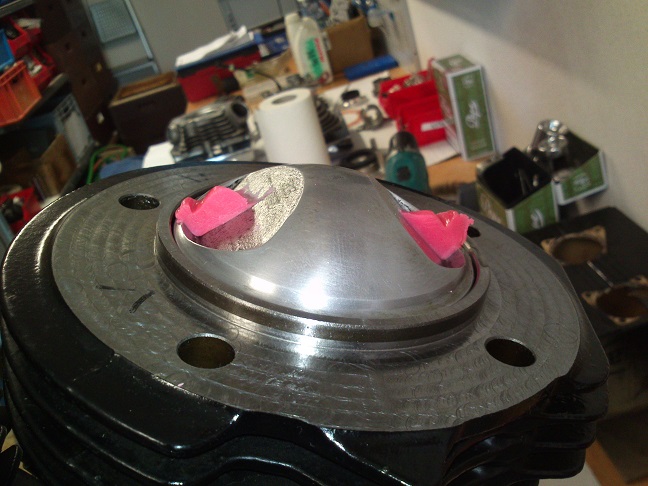 Auf dem Bild mit dem Kolben und den Knetstücken, ist das deine OT-Position? Ich frag, weil die Kolbenkante tiefer steht, als die Oberkante der Laufbuchse. Wurde außen am Kolben nicht auch Material abgedreht, und was für Kolben sind das überhaupt?