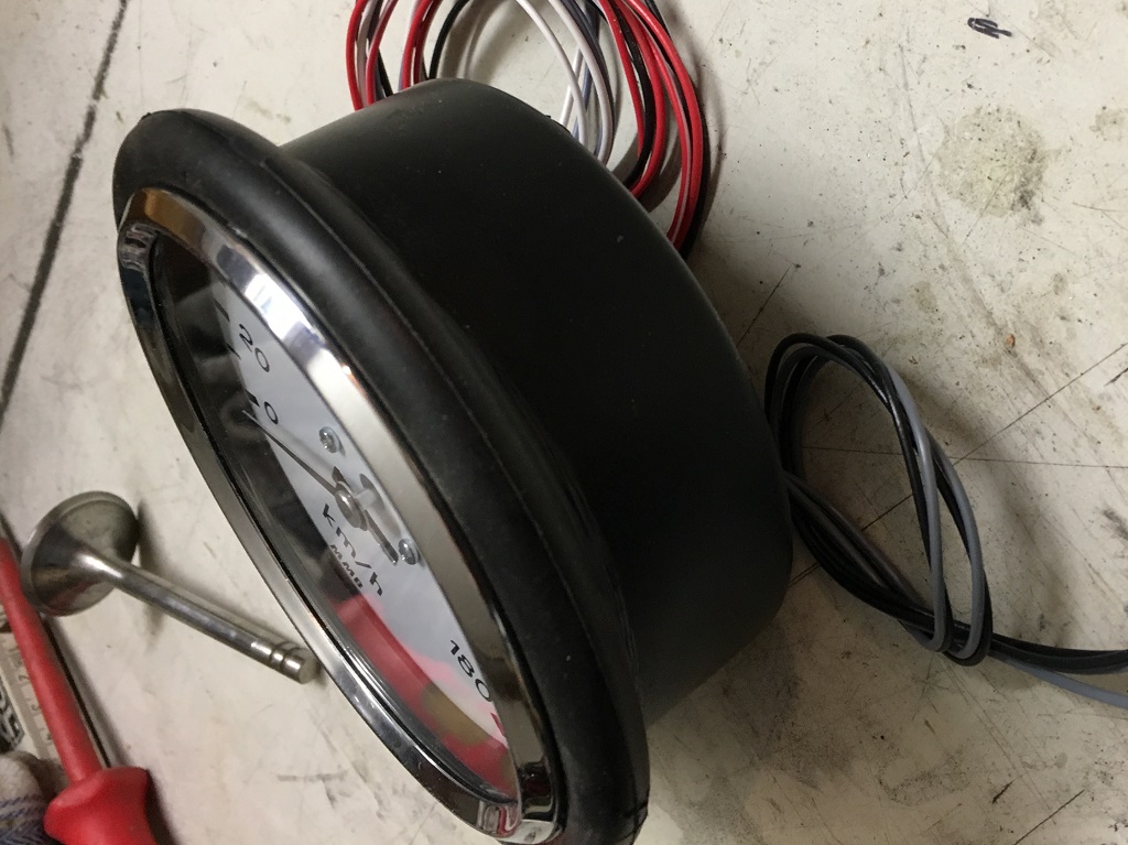 Tacho ist im Dash. Hatte gerade leider kein passendes Material für einen Distanzring um die 20mm im Durchmesser auszugleichen. Hab mir mit einem O-Ring für ein DN110 Abwasserrohr beholfen, der füllt den Spalt perfekt und bei meinem schwarzen Dash fällt das auch nicht auf. Das Ganze dann noch schnell mit Sikaflex eingeklebt und fettich.