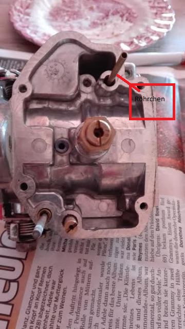 Das Vergasergehäuse ist mir beim Zerlegen herunter gefallen und das Messingröhrchen vom Choke abgeknickt