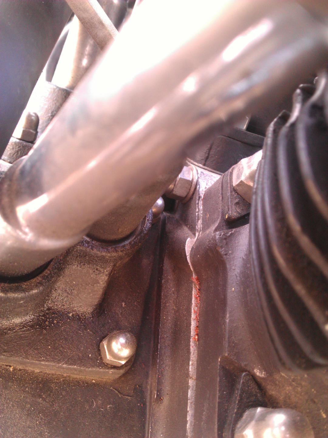 mein 77er Gehäuse hat diese Bohrung auch , allerdings hat mein vorderer Zylinder eine passende Nase angegossen welche die Bohrung und die Dichtung komplett überdeckt.