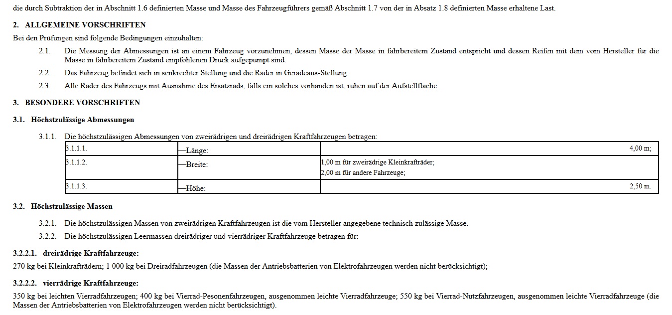 ja früher war das so,aber Dank der EU eben nicht mehr. Du musst Dich quasi an die allg. Abmessungen eines Zweirades halten,mehr nicht. Zu finden unter der Richtlinie 93/93/EWG.......Höhe max. 2,50m. Also wenn Du an Deinem Motorrad stehst, Arm nach oben, so hoch darf sie ungefähr sein...das ist ein ziemlich guter Richtwert, außer Du bist kleinwüchsig :wink: