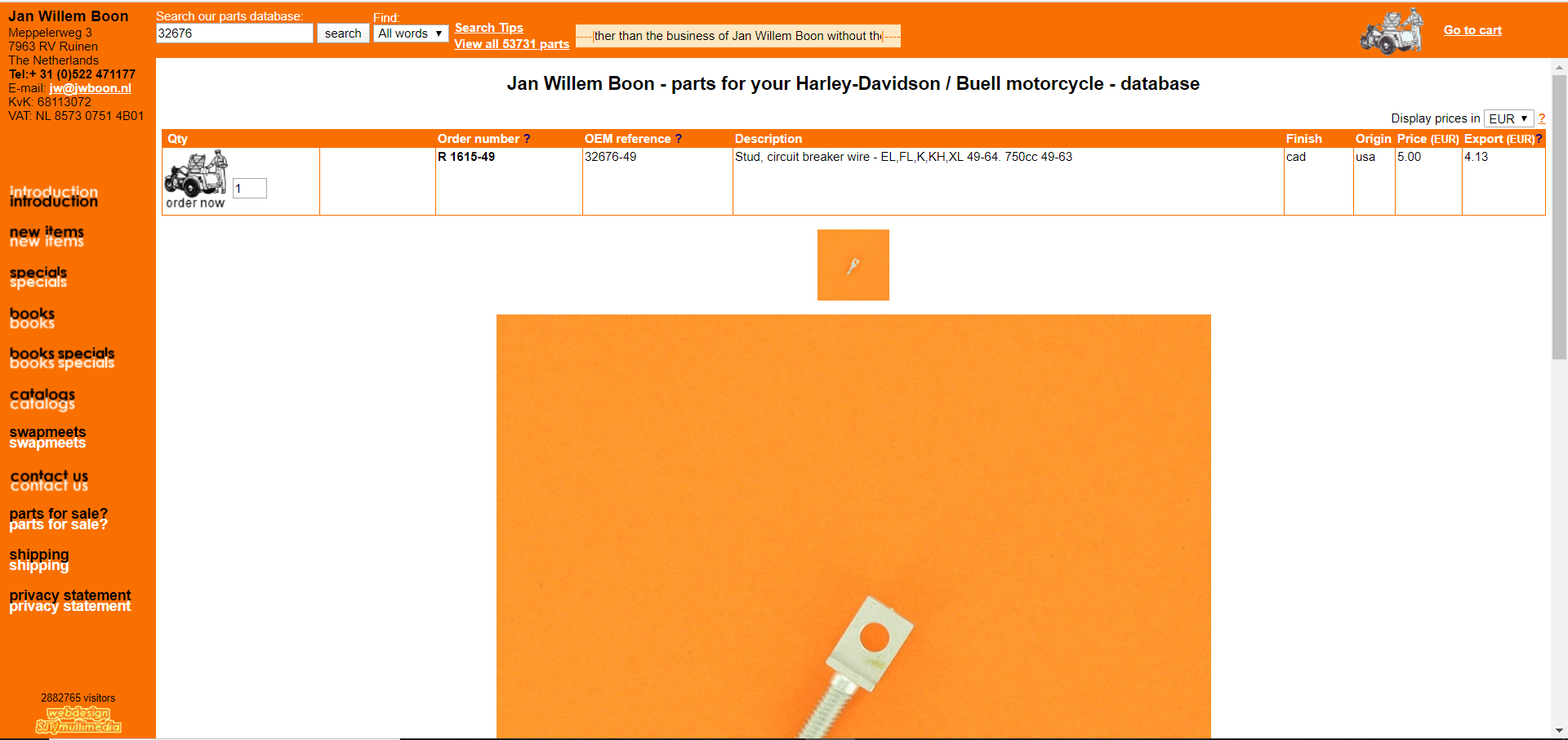 ... aber ich habe das Teil gefunden; Distributor Wire Stud, Teilenummer Harley: 32676-49. Kann dir der Gerry evt. bei V-Twin bestellen, kostet aber selbst in den USA 20,06 USD und ist wohl derzeit im Rückstand.