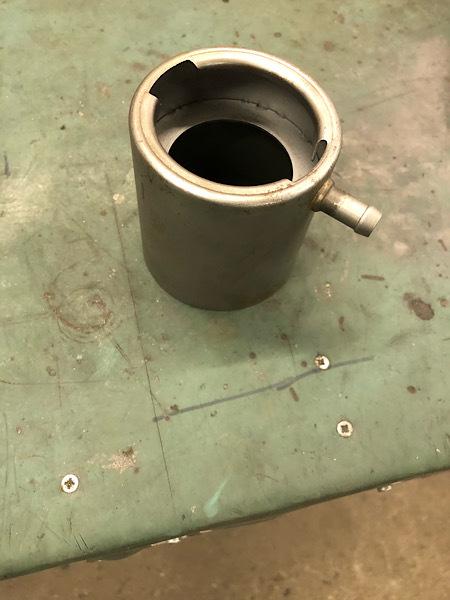 Habe dem Tank eine Öffnung ganz unten verpasst als Zuleitung und daneben eine mit einem Rohr versehen das ca 1 cm unter dem Oberen Deckel des Tanks endet wo die Entlüftung angeschlossen ist die oberhalb der Ölpumpe sitzt.