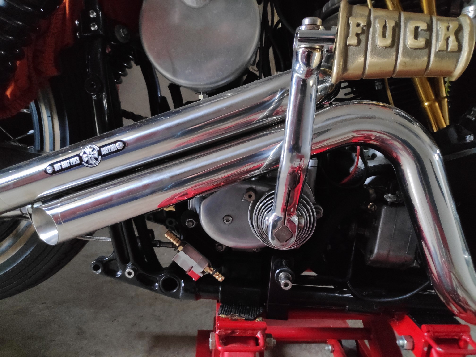 Die Lösungen im Netz mit dem Halter an den Getriebeschrauben sind bei mir nicht so einfach umzusetzen wegen der MAMBA Auspuff Anlage die das Getriebe verdeckt. Werde noch den Auspuffhalter wegmachen und den Kugelhahnschalter noch nach unten setzen.