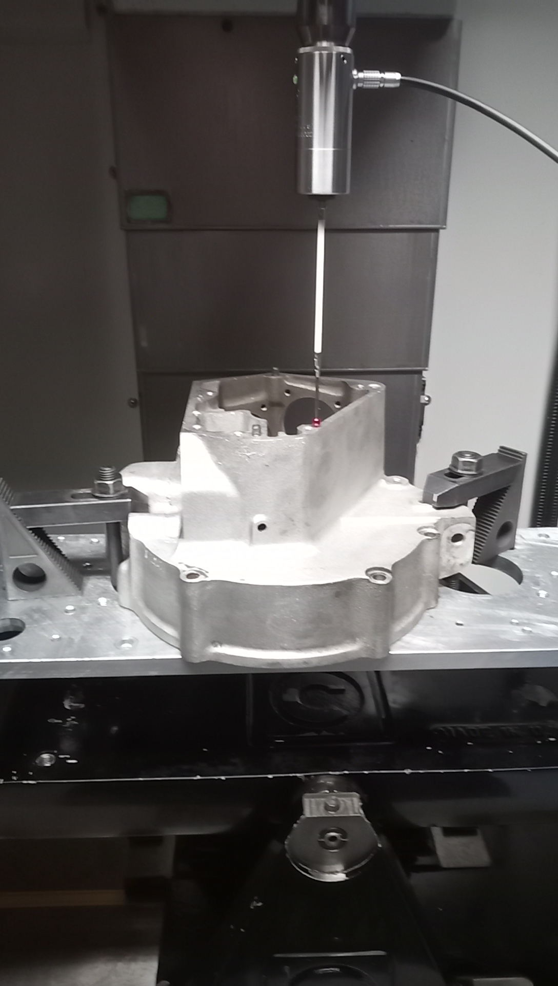 Das Gehäuse wird auf dem Bearbeitungszentrum aufgespannt und mittels Taster zunächst in den beiden Dreh- und Schwenkachsen ausgerichtet