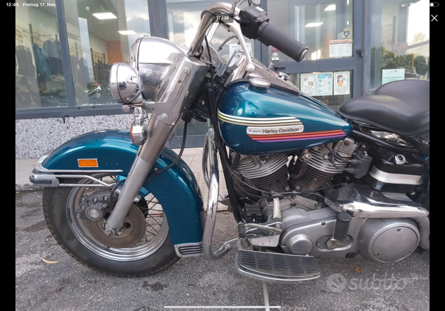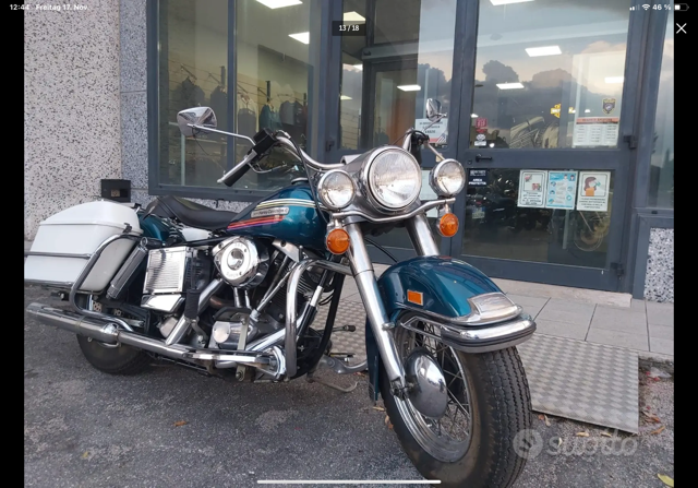 Einige haben es sicherlich mitbekommen, dass ich mir vor einem Jahr eine Early Shovel angeschafft habe. Nun möchte ich mir auch noch eine Late Shovel anschaffen. Habe hierzu bereits etwas gefunden. Ein Model aus 1974. Würde gerne mal eure Meinung dazu abholen. Bei den Schaltern fehlen mir schon mal die Beschriftungen. Auch as Sattelkreuz fehlt. Dafür scheint der Lack original und sehr gut (bis auf die Macke beim Heckfender Ober dem FLH Sticker). Auch das Windshield, Buddysitz und Topbag sind mit dabei. Motor und Getriebe angeblich revisioniert (man erfragt nur nicht was)