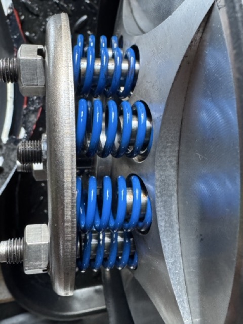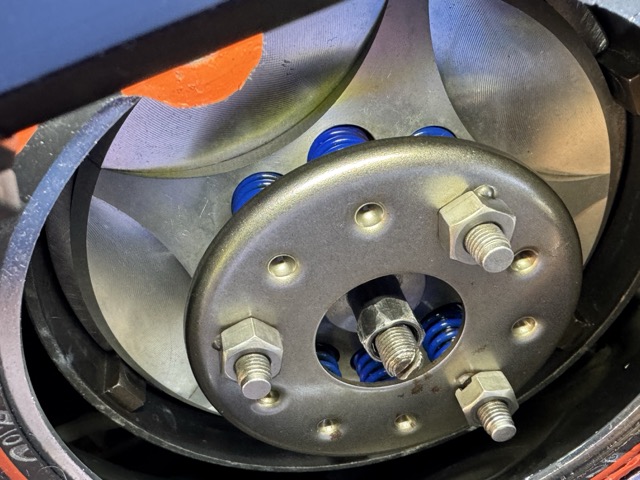 Hier ein Update. Ihr seht eine gerade erst neu eingebaute Stahlscheiben, ein Exemplar der seit 15.000 km eingebauten Reibscheibe (Belag 1,6mm je Seite vorhanden), einen Blick in den Korb sowie auf den Clutch Retainer und noch mal eine Aufnahme zur Spannung der Feder.