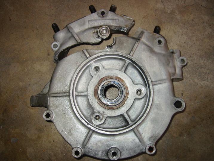 wie es aussieht habe ich wohl ein kleines Loch/Riss im rechten Motorgehäuse aus dem es mehr oder weniger rauspieselt. Da hat wohl auch schon mal jemand einen Schweißpunkt draufgesetzt, aber wie gesagt ist es nicht ganz dicht.
