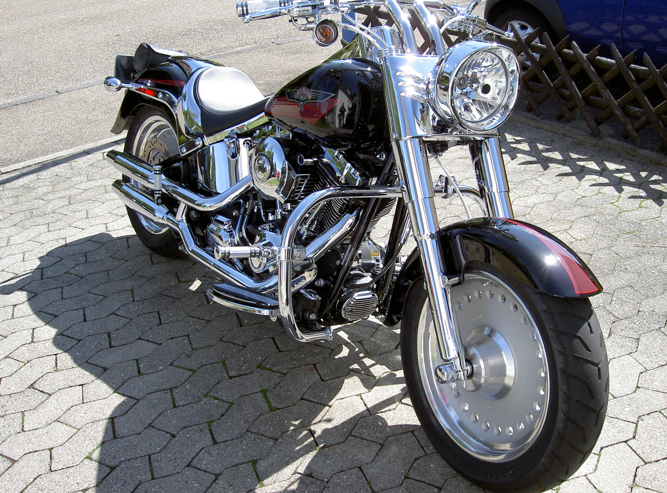In den Fat Bob nen Shovel, eine andere Auspuffanlage, etwas Gebrauchtlook.