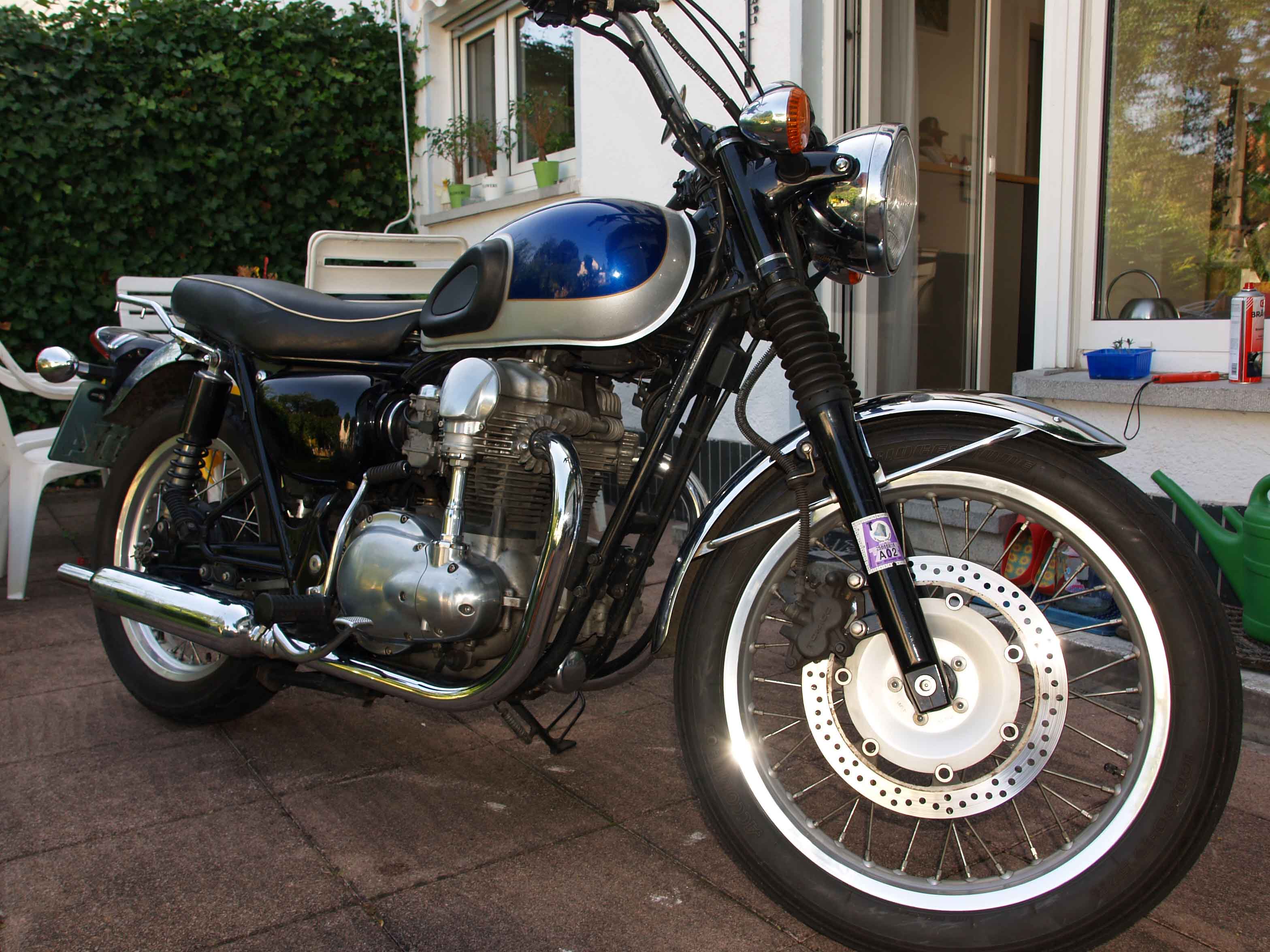 W650.jpg (431 KB)Macht Spaß (ca. 200 kg) und sieht meiner Meinung nach auch gut aus (Königswellenmotor und sogar ein Kickstarter). Im Verhältnis zu einer neuen Harley ein Schnäppchen. Die Japaner bauen halt die besseren Mopeds...