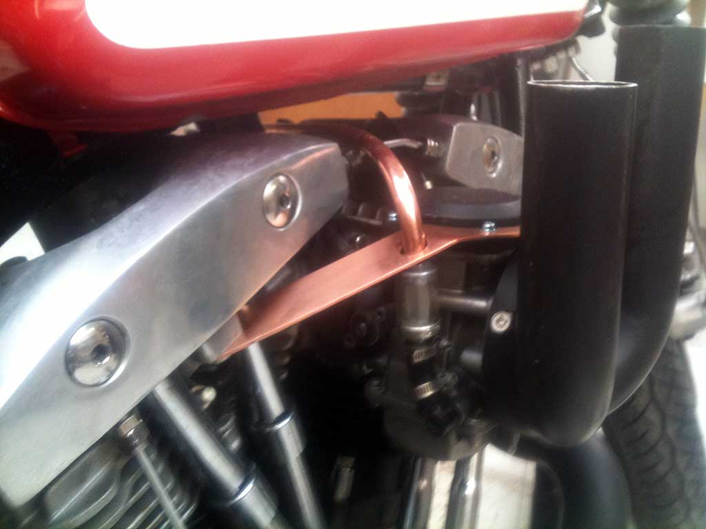 ich hab mir einen neuen Luftfilter Gebaut und das erforderte eine neue Abstützung. Jetzt hätte ich gerne eure Meinungen was ihr über Funktion und die Belastbarkeit des Materials denkt also der Luftfilter ist aus Edelstahl und soll noch Kupferendkappen bekommen und die Abstützung ist aus 2mm Kupferblech.