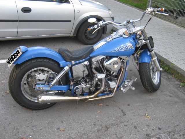 ich bin neu im HD Gewerbe bin Bj.1971 und Fahre seit ich 14 bin Mopped, angefangen mit Kreidler, Hercules, KTM, dann 250 RD 1100GSXR, 1200 XJR, habe vor 4 Monaten eine Fazer1000 von meiner Frau bekommen zum anstehenden 40zigsten und dann, dann naja ein Kollege von einem Kumpel 61 Jahre alt fragt willst mal meine Harley sehen, "eijo" er meinte "kannst haben wenn du will’s", also Plane ab und........ naja Farbe net so mein ding ansonsten net schlecht dann Motor an....................ich Gänsehaut Geil nix anners mehr im Kopp gehabt!!!!