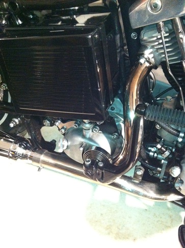 Hi, seriennahe Krümmer für Kick-Starter gibt es für 2-2 (crossover) und 2-1 im Zubehör zu kaufen, z.b. von Paughco. Über die Passgenauigkeit hört man Unterschiedliches. Die Anlagen kommen normalerweise ohne HItzeschilder, evtl gibt es so was aber im V-Twin-Katalog. Ich hab bei der Nachrüstung des Kickers seinerzeit die Originalkrümmer rausgeschmissen (das Geraffel auf der Primärseite ging mir eh auf den Keks) und eine kickertaugliche 2-1 montiert. Hitzeschilder brauche ich nicht.