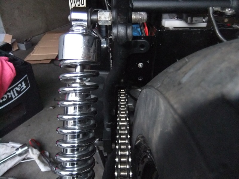 Der Vorbesitzer, übrigens Harley Werkstattinhaber, hat dann wohl gedacht mit den Unterlegscheiben ist das Problem gelöst, schaff aber ein neues- Hinterradblockade.-