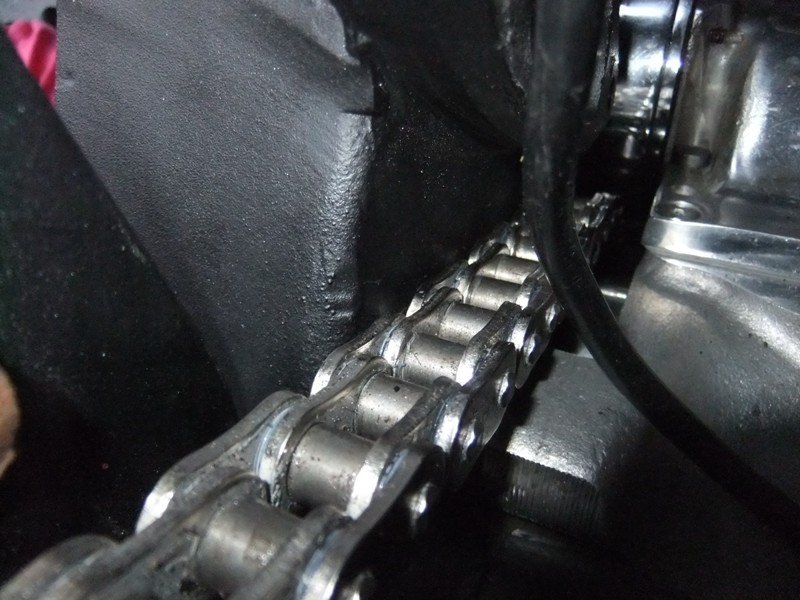 Kann es sein, dass ein Spezi den Spacer von weggelassen hat und am Primärkasten rumgefeilt hat, damit der ganze Laden wieder passt. So was hab ich nämlich schon gesehen und da wird´s eng für die Kette.