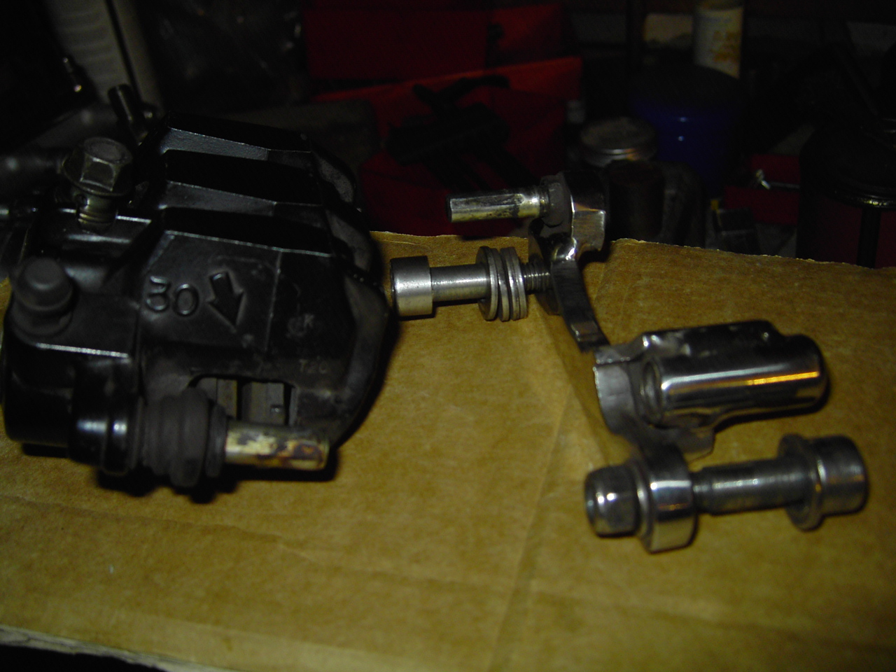 aber die Zangen sind nach einigen Jahren des zufriedenen Gebrauchs wieder Geschichte, (deswegen sind auch diese Detailfotos möglich), da ich gerade auf TwinCam Bremsen umrüste. Somit wandern die Hondazangen nebst Bremspumpe ins Regal. Der Umbau findet statt da ich die Japs-teile wieder weg haben wollte und ich mit den Bremsen von meiner TwinCam sehr zufrieden bin. Mit den Japs-Bremsen war ich allerdings auch immer sehr zufrieden. Und man muss immer was zu tun haben
