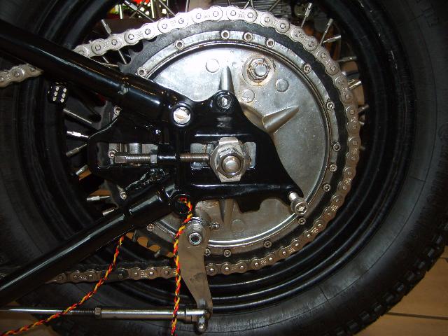 Ausserdem ein Dome(?)-Getriebe ohne Kicker, neuerer Primärkasten, E-Starter, vorne und hinten 150er Reifen, Super E mit K&N, etc.!