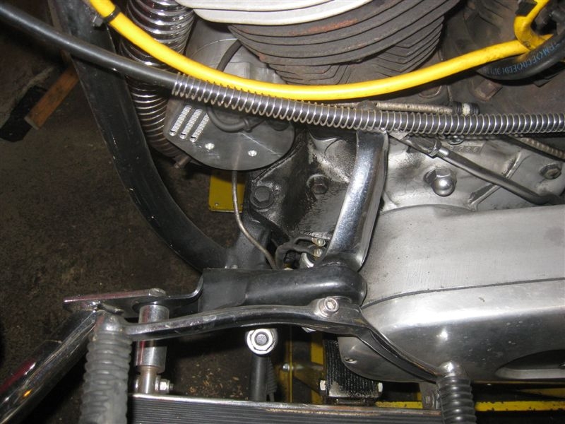 ich will die Bremsleitung für die hintere Trommelbremse an meiner FLH B. 71 erneuern. Die Abbildungen in den Katalogen und im Part-Manual verwirren mich allerdings, da sie überhaupt nicht zu dem Leitungsverlauf passen, wie er momentan vorhanden ist. Bei meiner Kiste läuft die Bremsleitung (starr) zunächst vom Hauptbremszylinder unterhalb des Steuergehäuses und der Ölpumpe nach hinten bis zum T-Stück mit Bremslichtschalter. Der ist an der rechten vorderen Schraube (in Fahrtrichtung gesehen) der Getriebegrundplatte mit befestigt.
