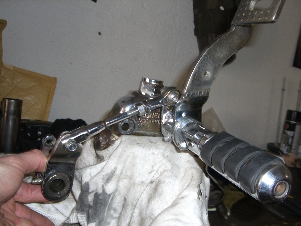 da die aber nicht ohne Modifizierung an die späten halteplatten (zur aufnahme von Trittbrett und HBZ) passen, hab ich den unteren teil von dem geraden Bremspedal mit dem oberen teil von einem früheren pedal verschweisst. das folgende Foto zeigt zwar eine ganz andere bastelei, aber vielleicht kannst du an dem bremspedal erkennen, was ich meine: